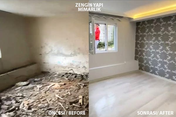 - Alçı ile düzelttiğimiz duvarlarda boya ve duvar kağıdı işlemlerini uyguladık. Bunun dışında bu aşamada mineral sıva veya dekoratip boyalar, sıvaları da düşünebilirsiniz.